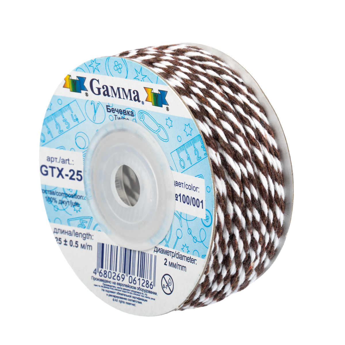 Шнур "Gamma" 2 мм GTX-25 бечевка 25 м ± 0.5 м №100/001 коричневый/белый