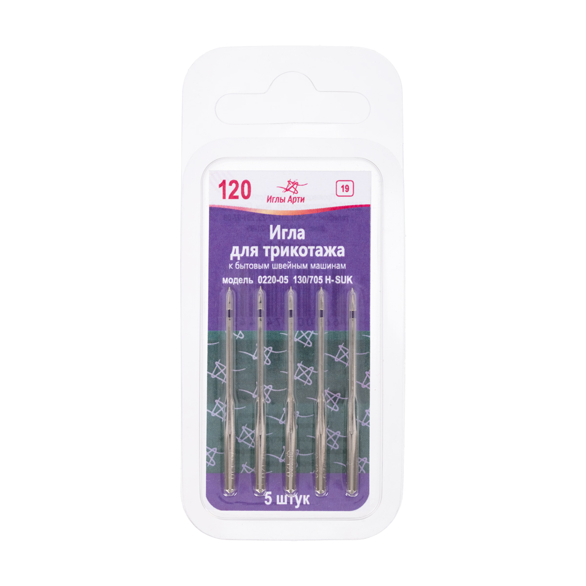 Иглы для быт. шв. машин "АРТИ" 0220-05 (№90-130) для трикотажа 5 шт в блистере №120