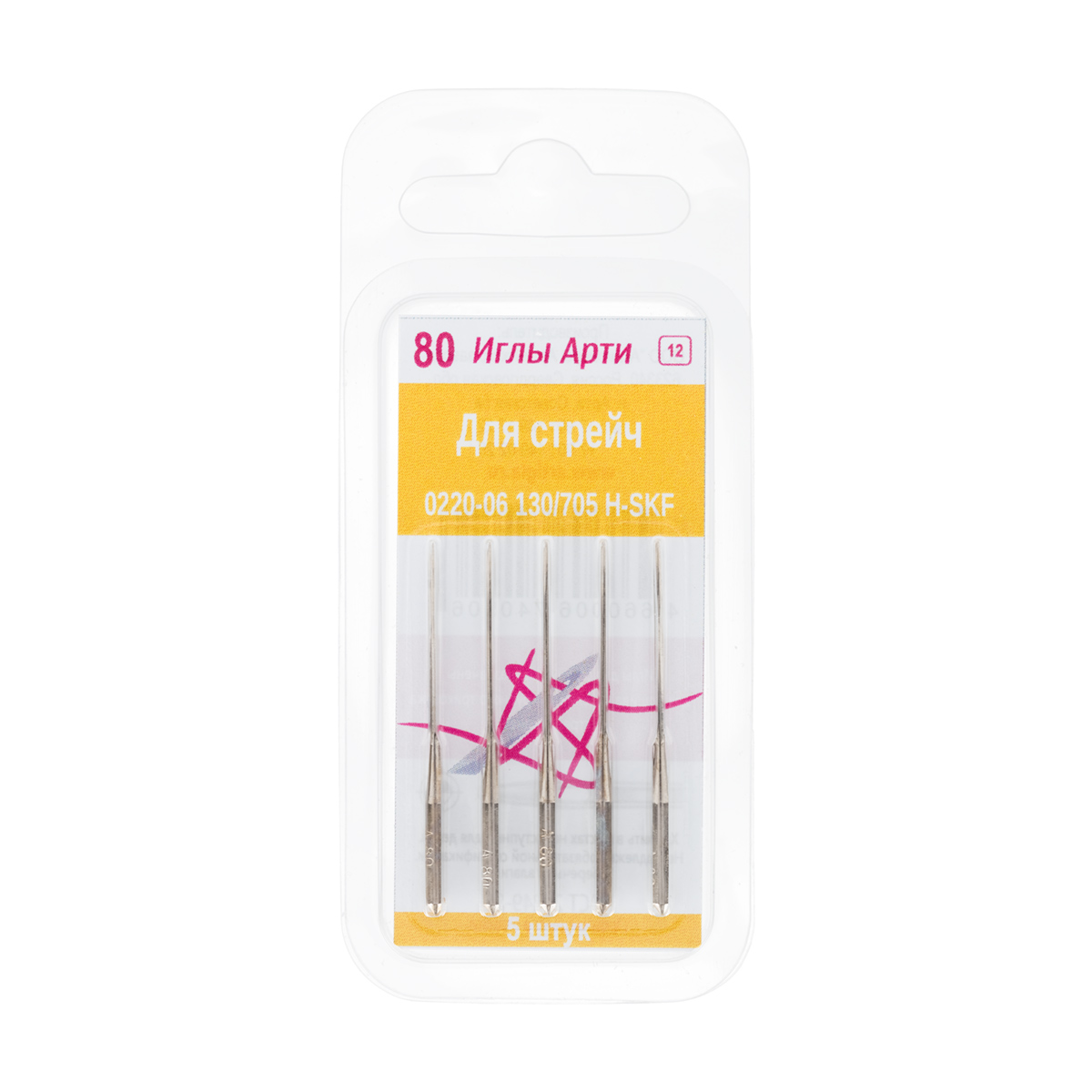 Иглы для быт. шв. машин "АРТИ" 0220-06 (№80) для стрейча 5 шт в блистере № 80
