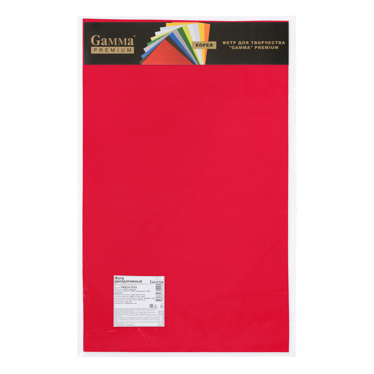 Фетр Gamma Premium FKR10-33/53 декоративный 1 мм 33 см х 53 см RN23 красный. В интернет-магазине АВАНТИ широкий ассортимент товаров, быстрая доставка и регулярные скидки.