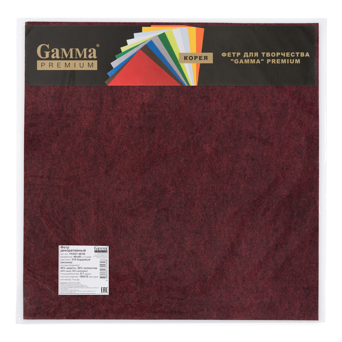 Фетр Gamma Premium FKX07-48/48 декоративный 0.7 мм 48 см х 48 см 219 бордовый (меланж). В интернет-магазине АВАНТИ широкий ассортимент товаров, быстрая доставка и регулярные скидки.