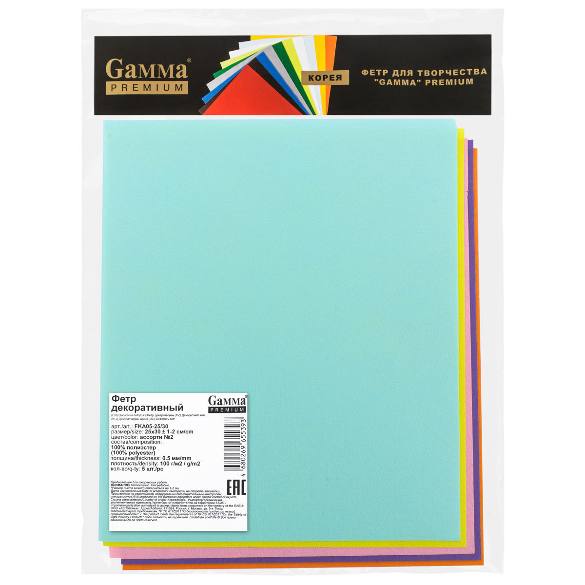 Фетр Gamma Premium FKA05-25/30 декоративный 0.5 мм 25 см х 30 см 5 шт ассорти №2. В интернет-магазине АВАНТИ широкий ассортимент товаров, быстрая доставка и регулярные скидки.