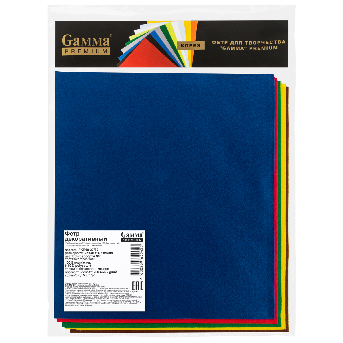 Фетр Gamma Premium FKR10-27/30 декоративный 1 мм 27 см х 30 см 5 шт ассорти №3. В интернет-магазине АВАНТИ широкий ассортимент товаров, быстрая доставка и регулярные скидки.