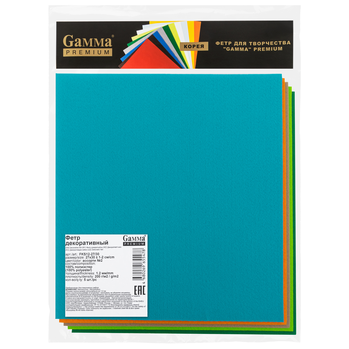 Фетр Gamma Premium FKS12-27/30 декоративный 1.2 мм 27 см х 30 см 5 шт ассорти №2. В интернет-магазине АВАНТИ широкий ассортимент товаров, быстрая доставка и регулярные скидки.