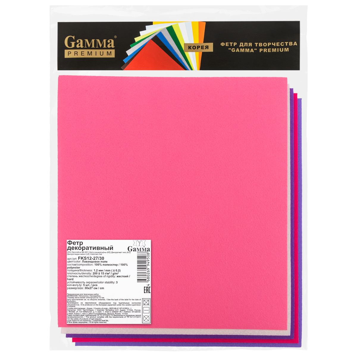 Фетр Gamma Premium FKS12-27/30 декоративный 1.2 мм 27 см х 30 см 5 шт Лавандовое поле. В интернет-магазине АВАНТИ широкий ассортимент товаров, быстрая доставка и регулярные скидки.