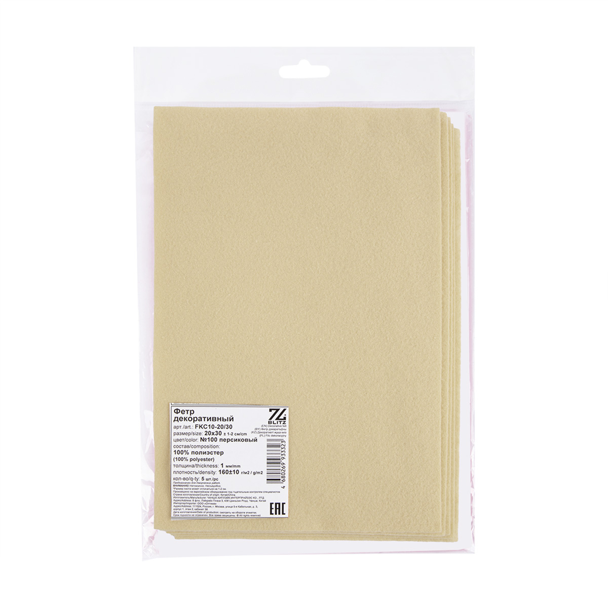 Фетр BLITZ FKC10-20/30 декоративный 1 мм 20 см х 30 см 5 шт №075 молочный. В интернет-магазине АВАНТИ широкий ассортимент товаров, быстрая доставка и регулярные скидки.