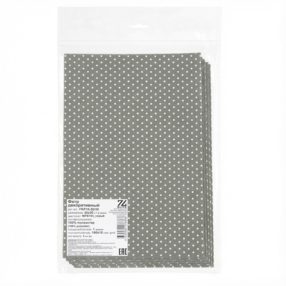 Фетр BLITZ FKP10-20/30 декоративный 1 мм 20 см х 30 см 5 шт №FE104_серый. В интернет-магазине АВАНТИ широкий ассортимент товаров, быстрая доставка и регулярные скидки.