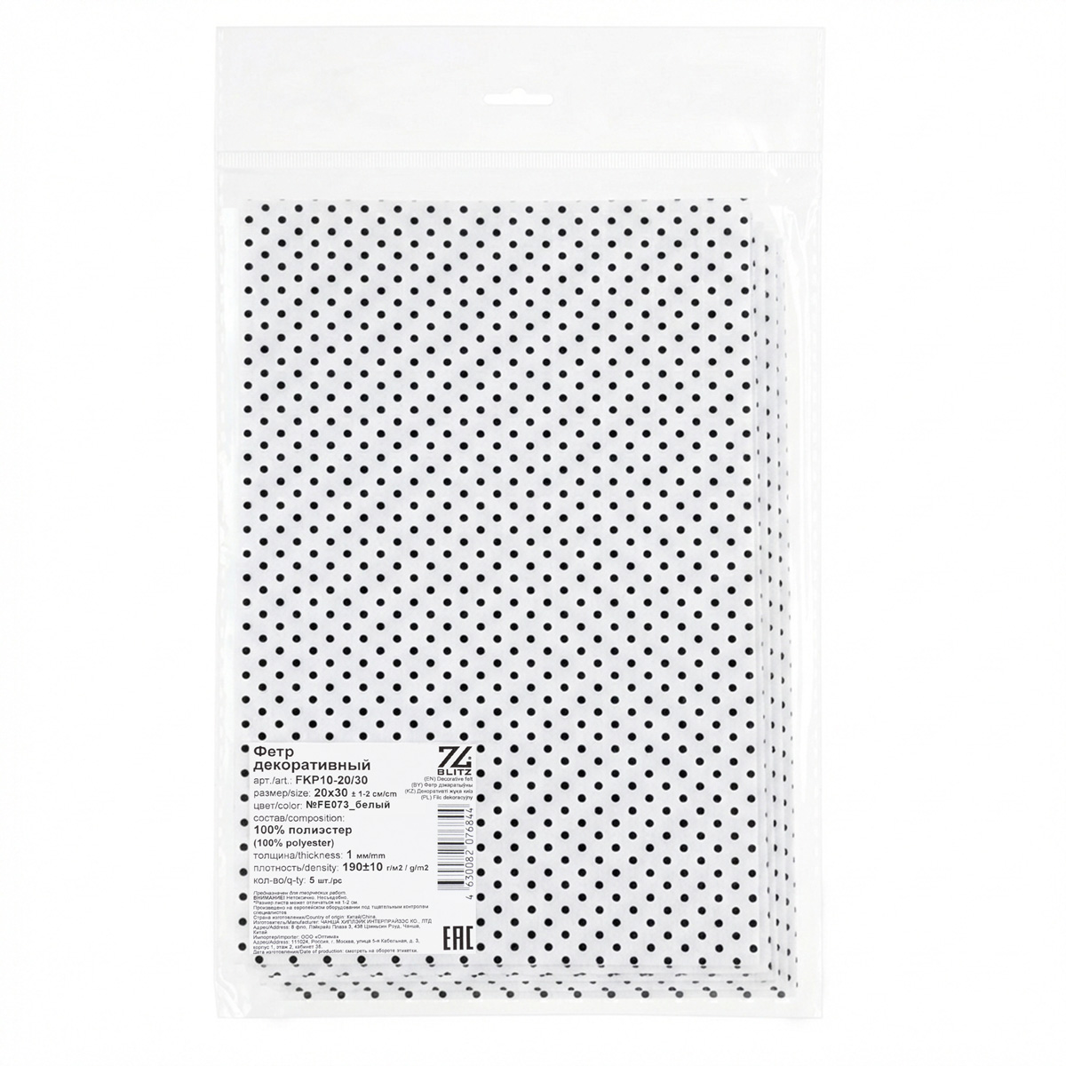 Фетр BLITZ FKP10-20/30 декоративный 1 мм 20 см х 30 см 5 шт №FE073_белый. В интернет-магазине АВАНТИ широкий ассортимент товаров, быстрая доставка и регулярные скидки.
