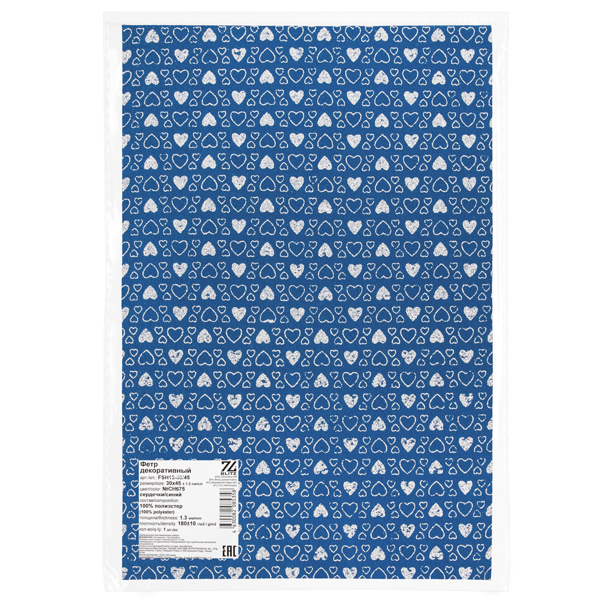 Фетр BLITZ FSH13-30/45 декоративный 1.3 мм 30 см х 45 см №CH675 сердечки/синий. В интернет-магазине АВАНТИ широкий ассортимент товаров, быстрая доставка и регулярные скидки.
