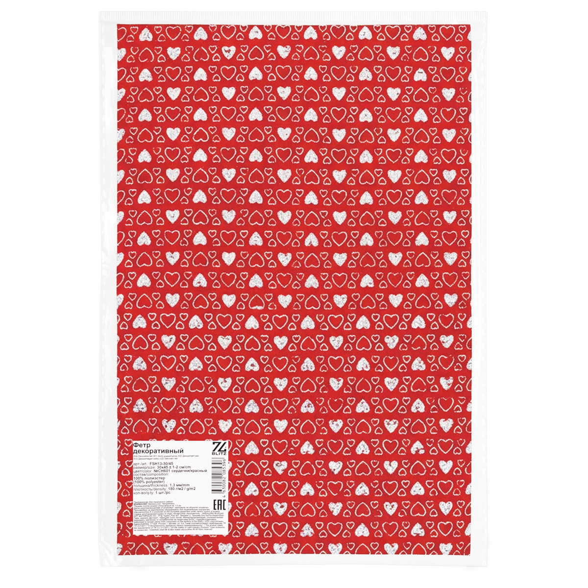Фетр BLITZ FSH13-30/45 декоративный 1.3 мм 30 см х 45 см №CH601 сердечки/красный. В интернет-магазине АВАНТИ широкий ассортимент товаров, быстрая доставка и регулярные скидки.