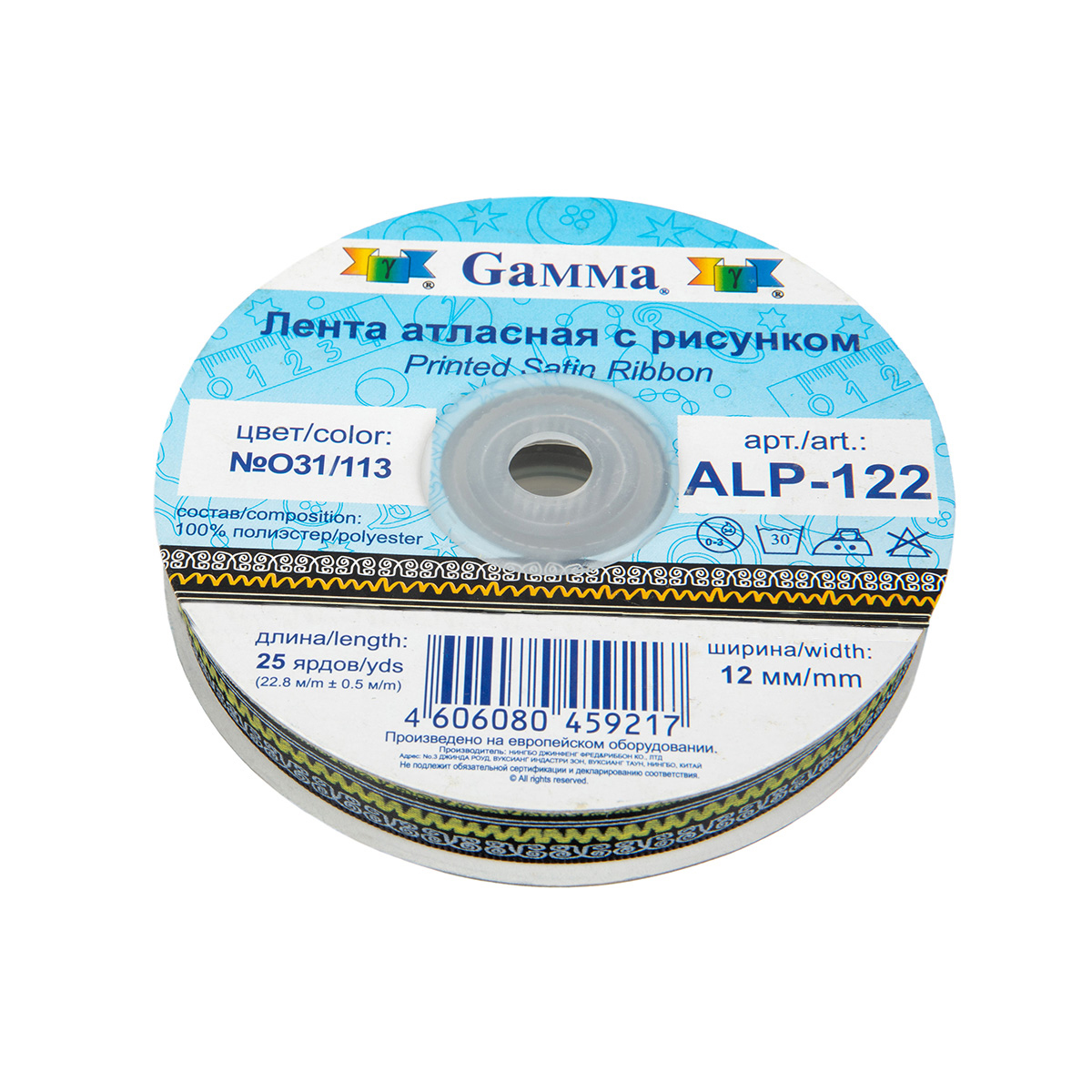 Лента атласная 12 мм ( 1/2 ) Gamma ALP-122 с рисунком 22.8 м ± 0.5 м O31/113 орнамент/черный. В интернет-магазине АВАНТИ широкий ассортимент товаров, быстрая доставка и регулярные скидки.