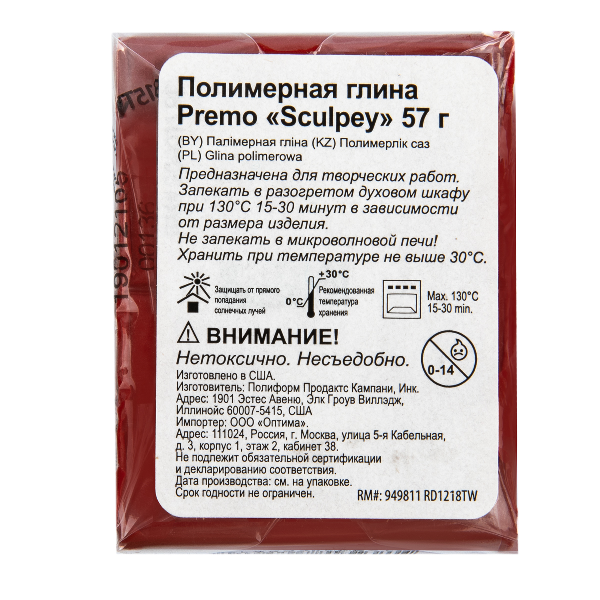 Sculpey Premo полимерная глина PE02 57 г СК/Распродажа 5054 темно-красный. В интернет-магазине АВАНТИ широкий ассортимент товаров, быстрая доставка и регулярные скидки.